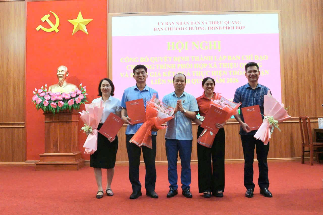 Tại hội nghị, Chánh Văn phòng HĐND&UBND xã đã công bố Quyết định số 360/QĐ-UBND ngày 17/4/2026 của UBND xã Thiệu Quang về việc thành lập Ban Chỉ đạo chương trình phối hợp triển khai chính sách tín dụng phục vụ phát triển Nông nghiệp, nông thôn. Theo đó, Ban chỉ đạo gồm 9 thành viên; trong đó, ông Ngô Xuân Dũng-PCT UBND xã làm Trưởng ban; bà Phạm Thị Phi Nga - Giám đốc Agribank chi nhánh Thiệu Hóa Thanh Hóa làm Phó Ban trực; ông Vũ Đình Tâm - Chủ tịch Hội Nông dân xã, bà Vũ Thị Duyên - Chủ tịch Hội Liên hiệp Phụ nữ xã làm Phó Ban.